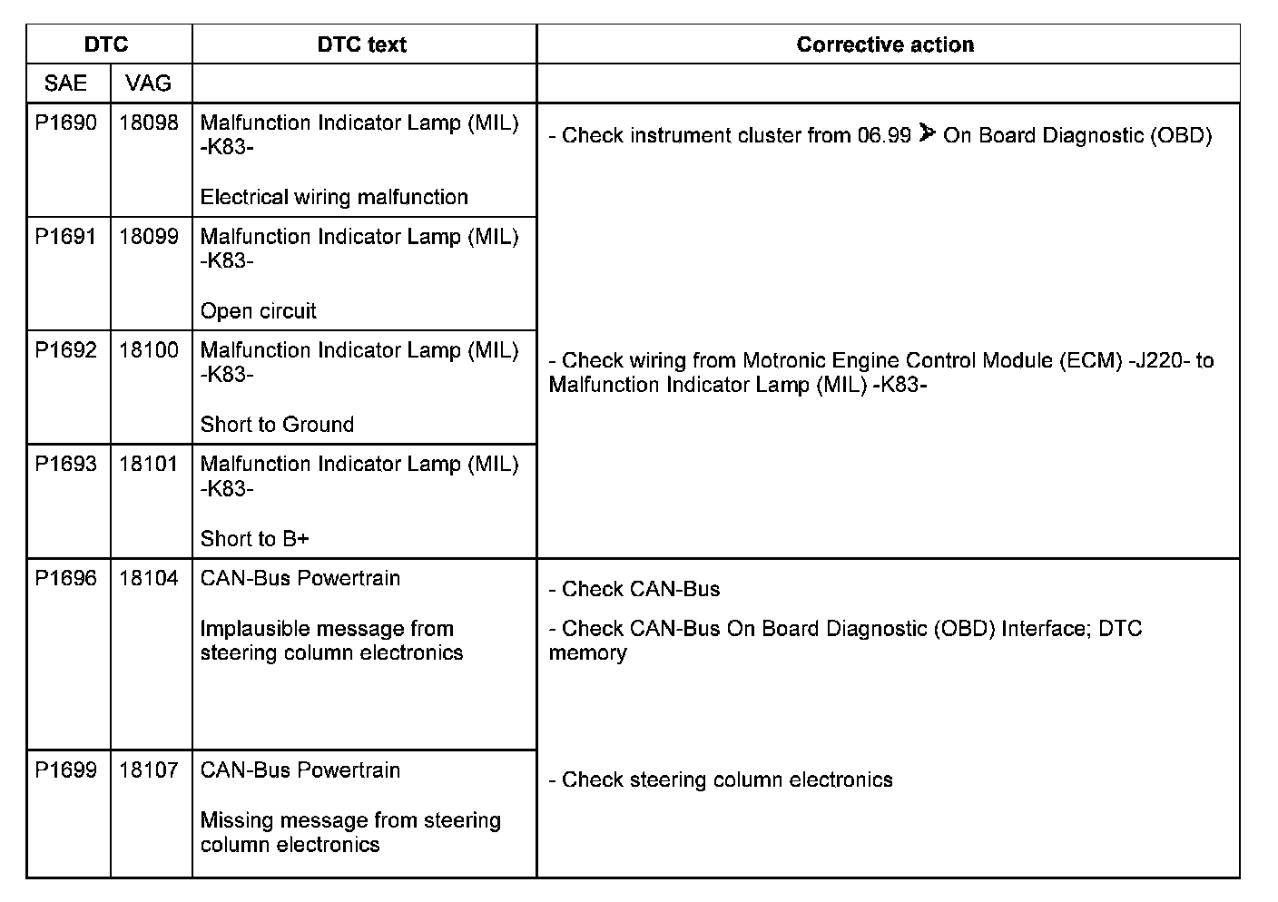 DTC P1690 - P1699: