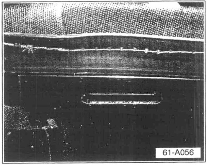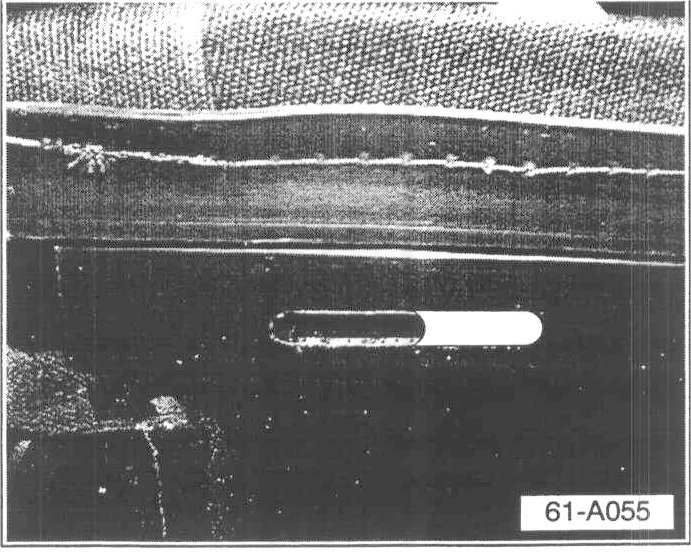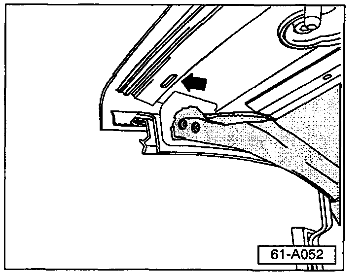 ^ Modify outermost attachment point (arrow) of the convertible top frame (on both the left and right sides) to accept the roof leading edge trim panel as follows: