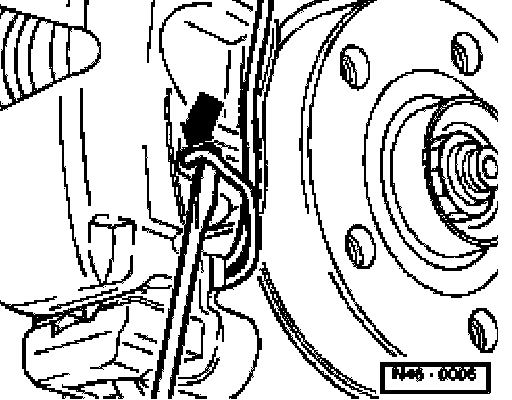 - Disconnect connector -1- on vehicles with a brake pad wear indicator.