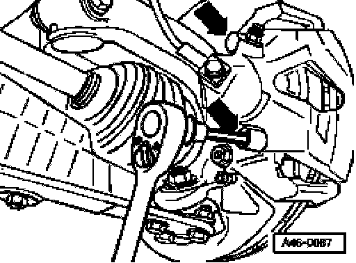 When installed, the arrow on the brake pad backplate -A- must point downward. Make sure this is installed correctly!