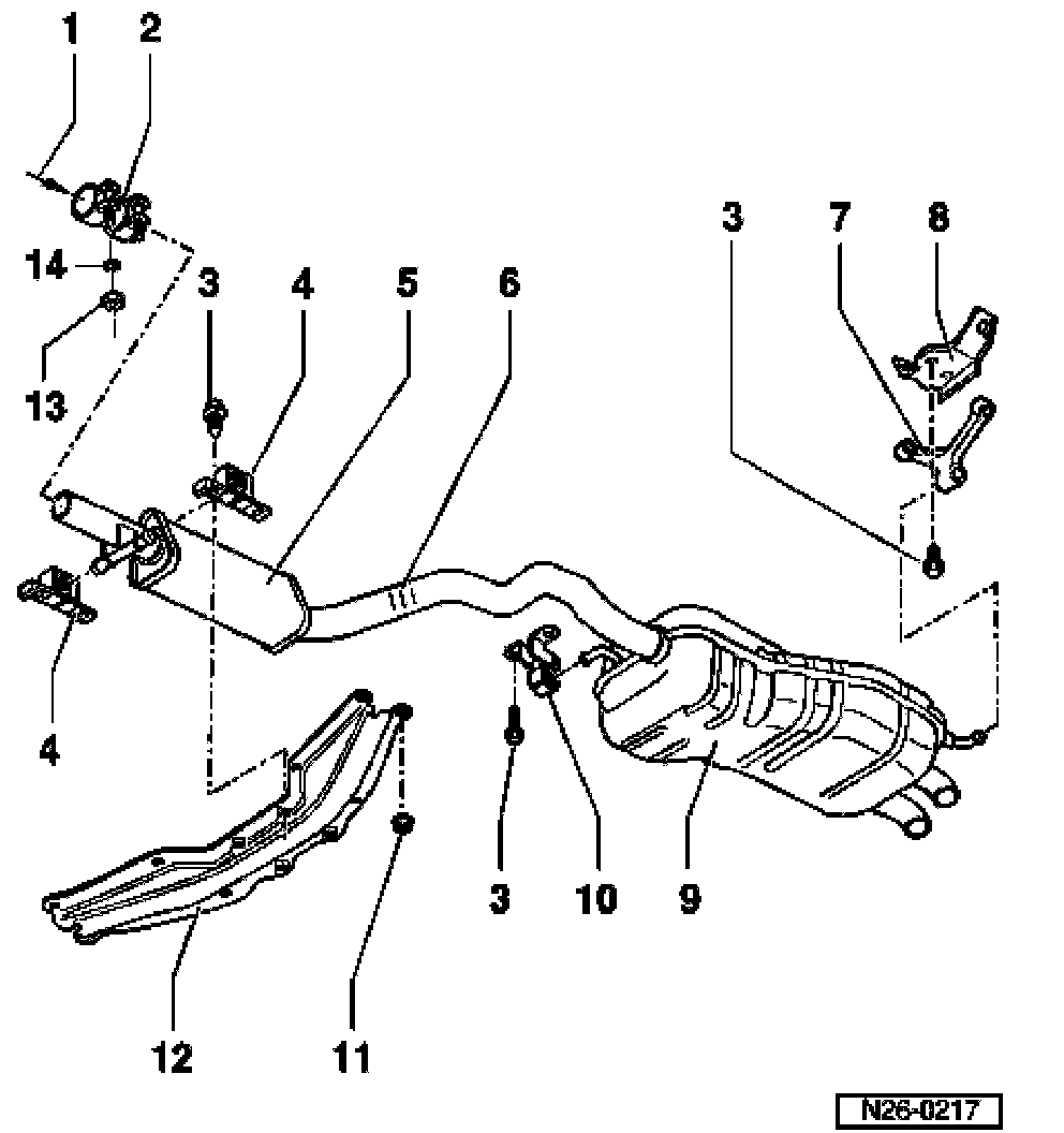 ^ As standard, center and rear mufflers are installed as a single component. In cases of repair the center and rear muffler are supplied individually and with a double clamp for connecting