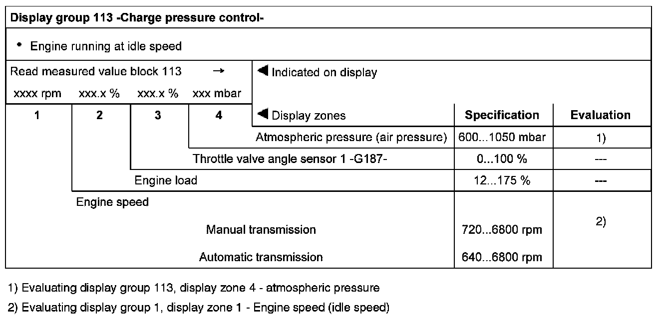 Measuring Value Block, Evaluating Display Groups 110...119 (Charge Pressure Control)