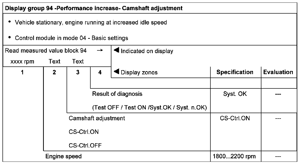 Measuring Value Block, Evaluating Display Groups 90...97 (Performance Increase)