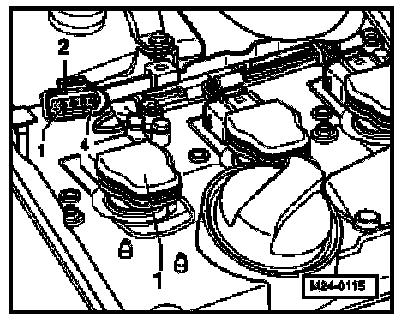 - Disconnect 4-pin connector -2- from ignition coil with power output stage to be checked -1-.