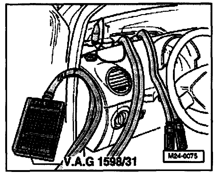 - Connect VAG 1598/31 test box to control module wiring harness. Engine Control Module is not connected by this action.