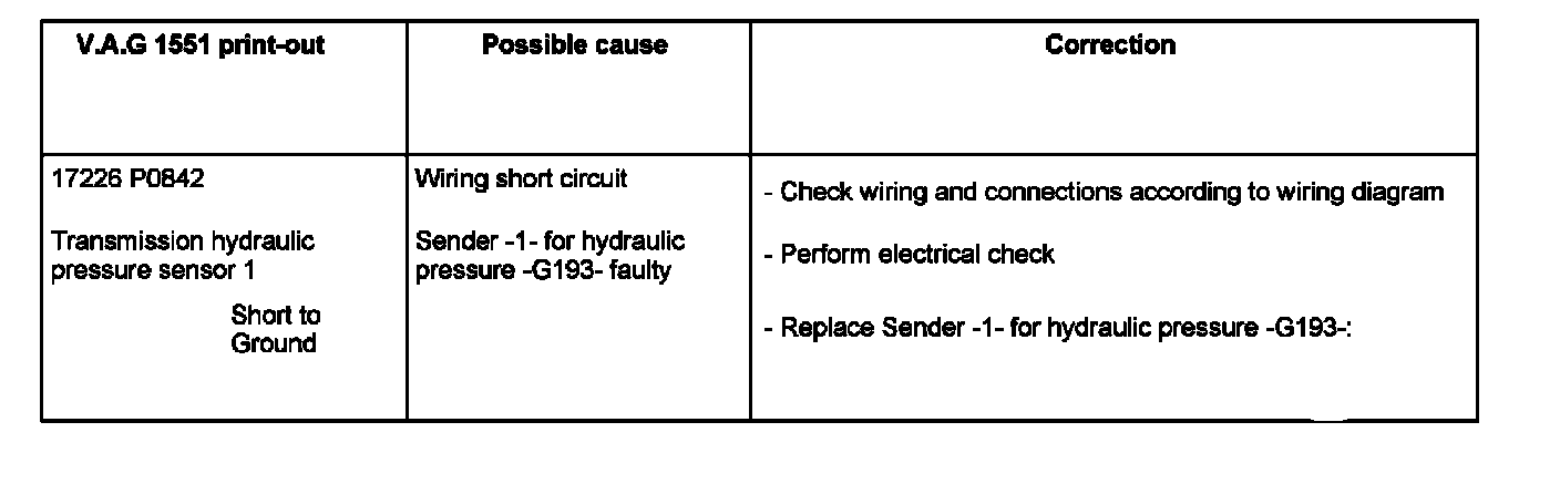 DTC17226 / P0842 Transmission hydraulic pressure sensor 1/ Short to Ground