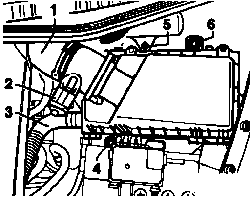 - Pull intake hose -1- and connector -2- off air Mass Air Flow (MAF) sensor.