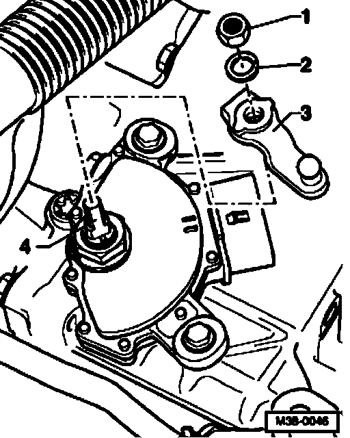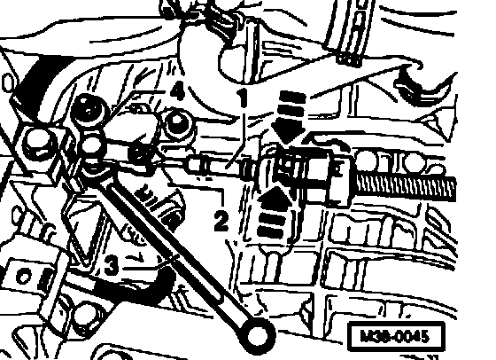 - Press selector lever cable -1- off selector shaft lever -4- with, for example, a 10 mm open end wrench -3-.