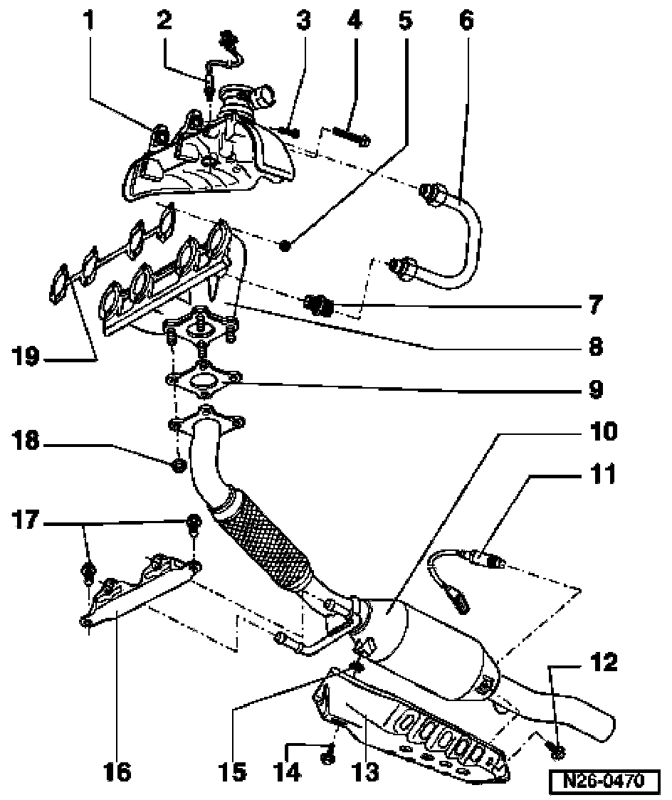 Exhaust manifold, Torque Specifications front exhaust pipe and catalytic converter.