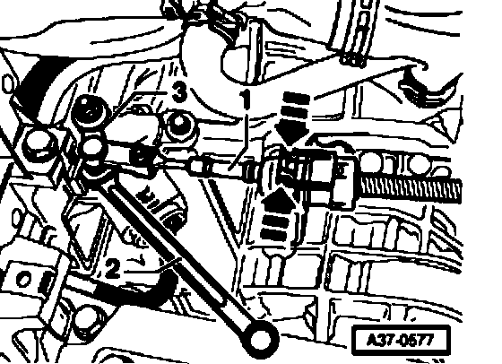 - Insert selector lever cable into transmission support bracket and press carefully onto selector shaft lever. Do not bend selector shaft lever when doing this, otherwise selector mechanism cannot be adjusted exactly.