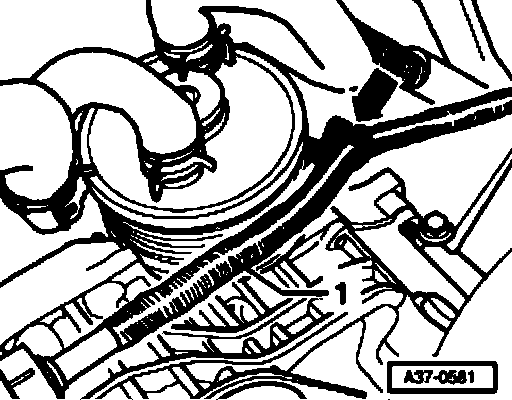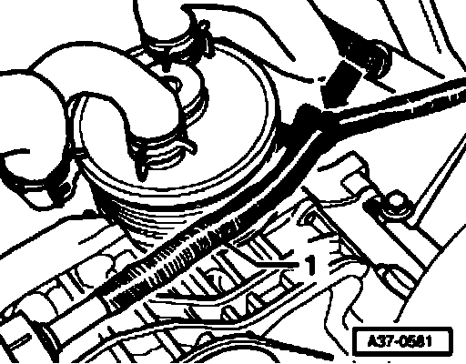 - Clip selector lever cable -1- into clip (arrow) on transmission. Ensure a distance of at least 5 mm from ATF cooler is maintained when routing gear selector cable.