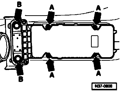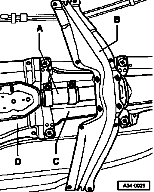 - Remove tunnel bridge -B- located beneath exhaust system.