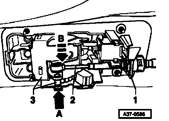 Note: The selector lever -3- must be positioned in the Tiptronic gate (arrow -A-) before starting the next work sequence.