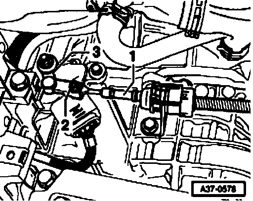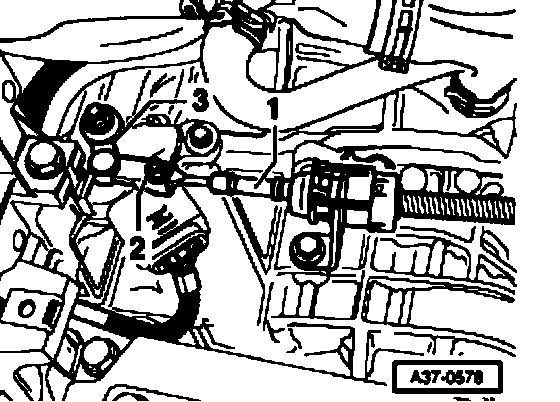 - Press selector lever cable -1- off selector shaft lever -3- with, for example, a 10 mm open end wrench -2-.