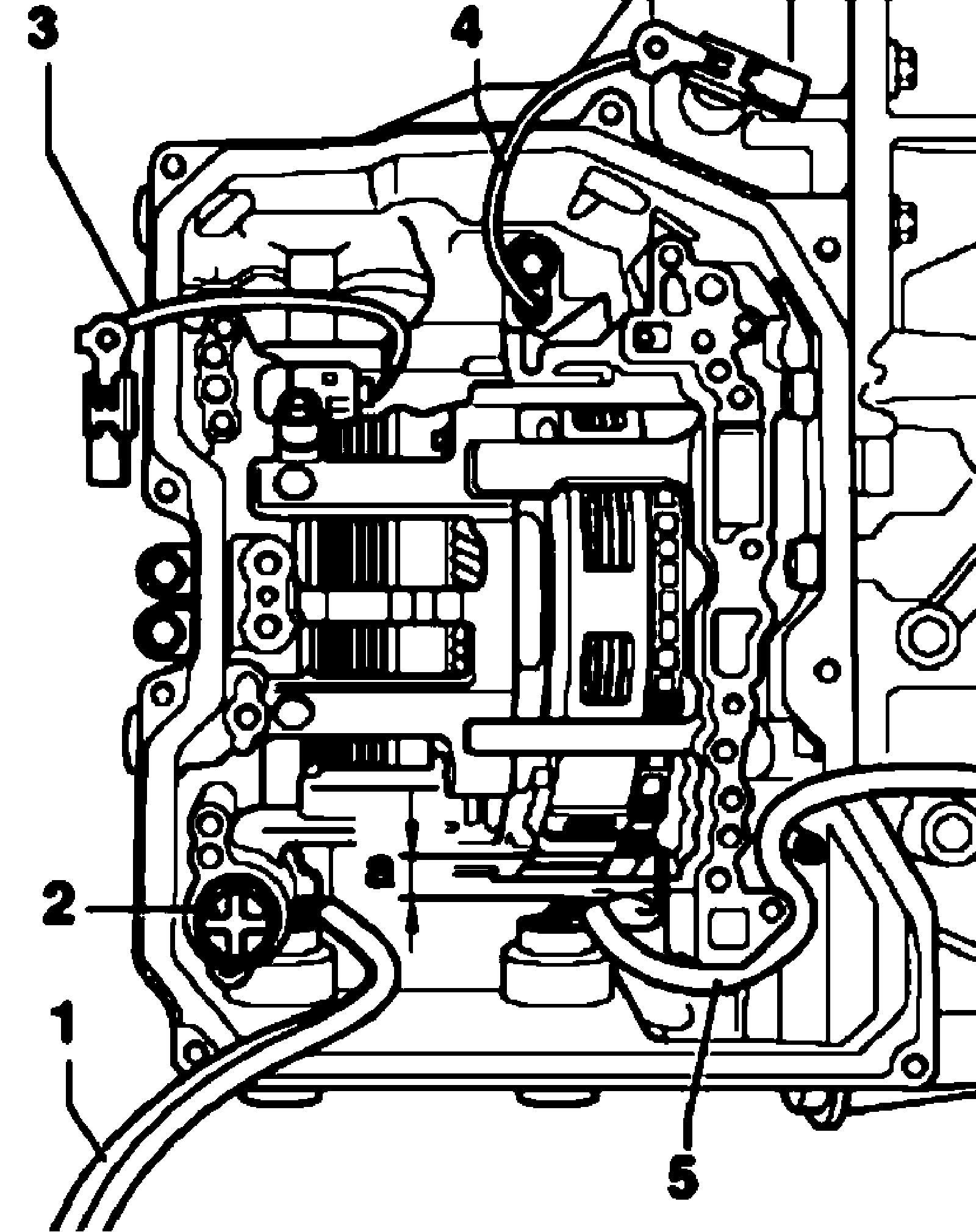 - Ensure that wiring harnesses -1-, -3-, -4- and -5- are not trapped by valve body.