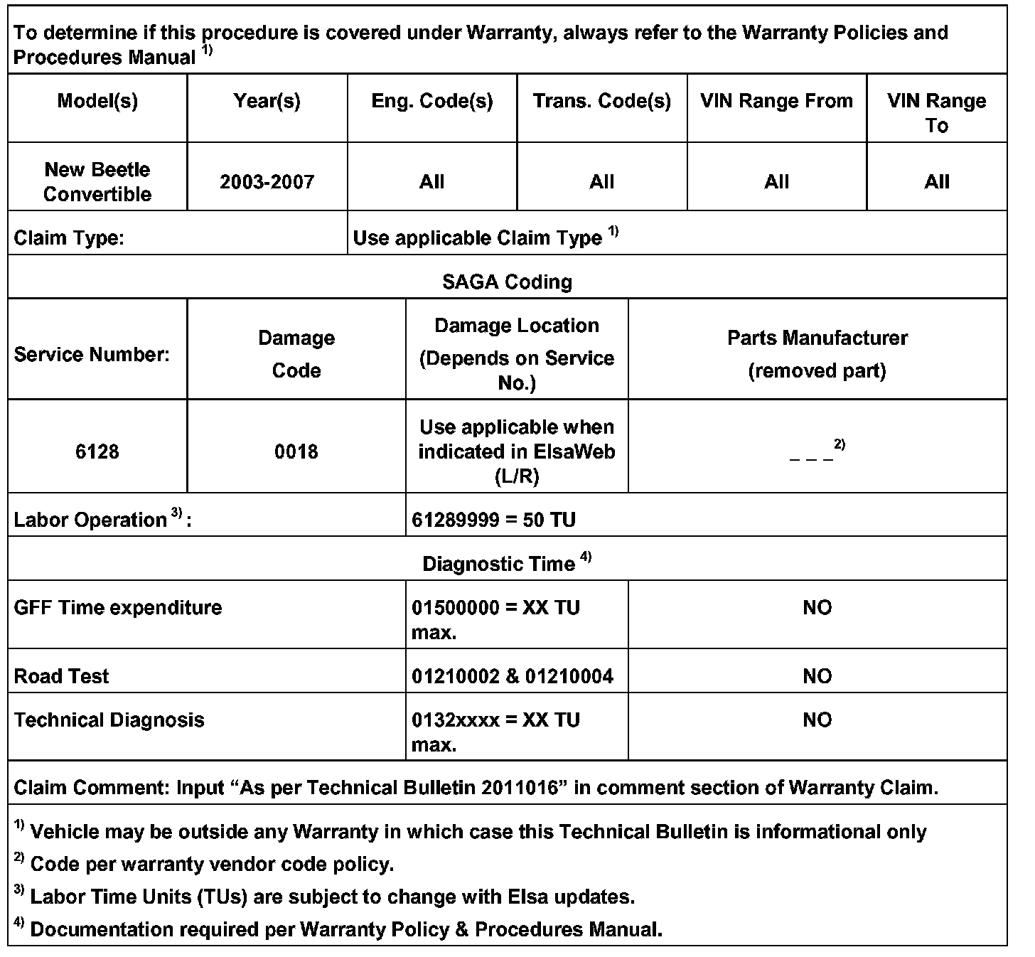 61 09 02 Mar. 12, 2009 2011016 Supersedes T. B. Group 61 Number 08-03 dated Nov. 18, 2008 to correct claim comment in warranty table.