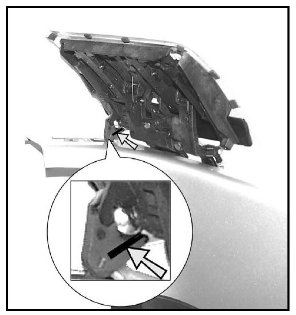 - If the long groove in the stopper -arrow- is in the forward position, the stopper installation is correct; NO exchange is required