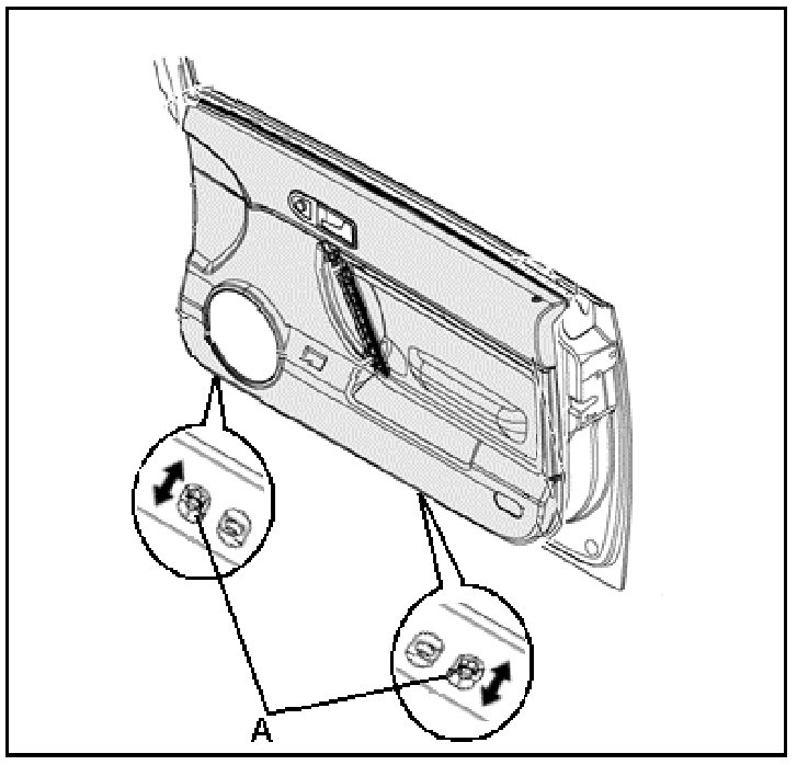 - Secure door trim panel with 2 phillips head screws -2- and tighten to 4 Nm (35 in. lbs.)