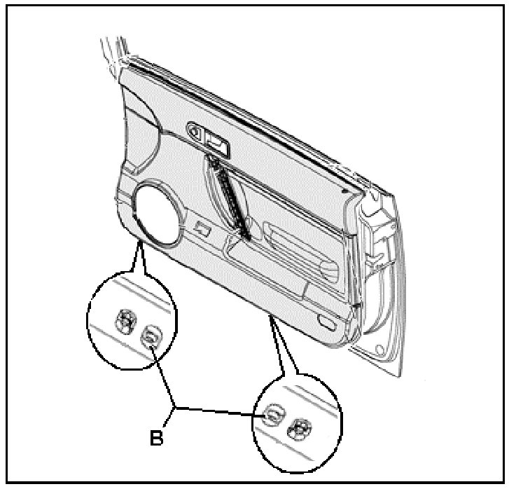 - Remove rubber grommets from holes -1- in the door inner panel