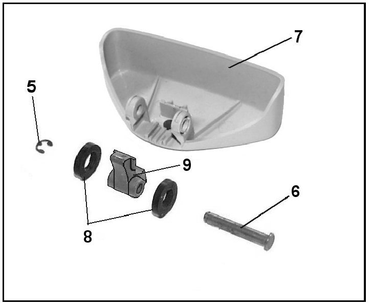 IMPORTANT: When removing the button, two rubber washers -8- and the adjuster -9- also come off. The rubber washers will need to be reinstalled with the new adjuster and button.
