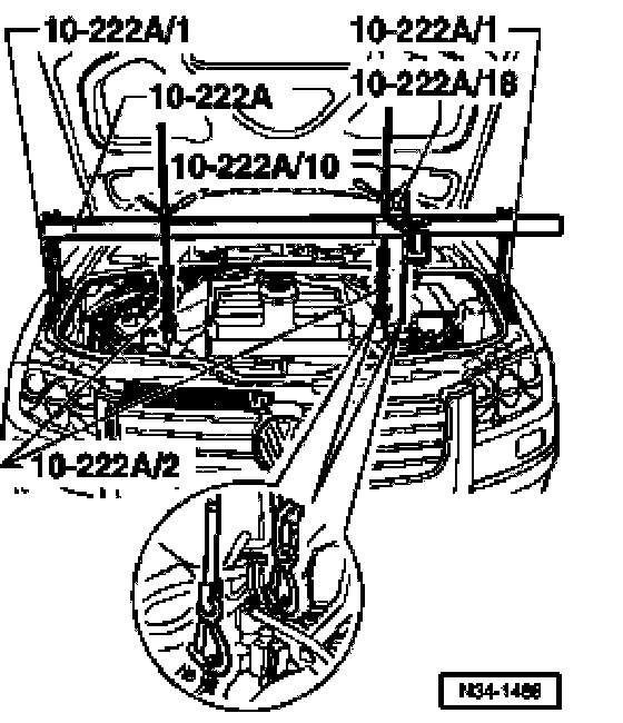 - Hook second additional hook 10-222 A/2 on lifting eye at rear right of engine.