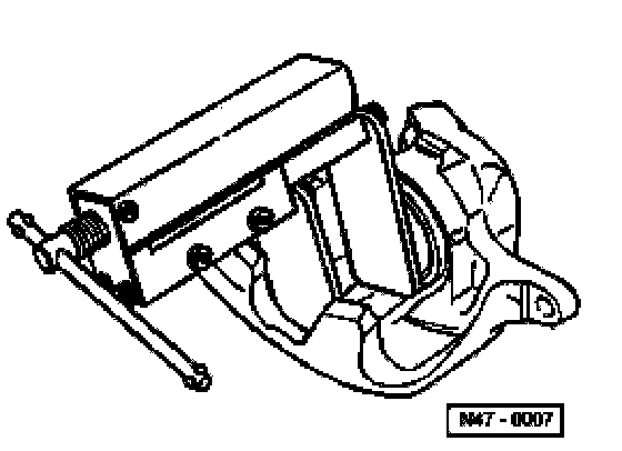Note: Place a wooden board into the recess of the caliper housing to prevent damaging the piston.