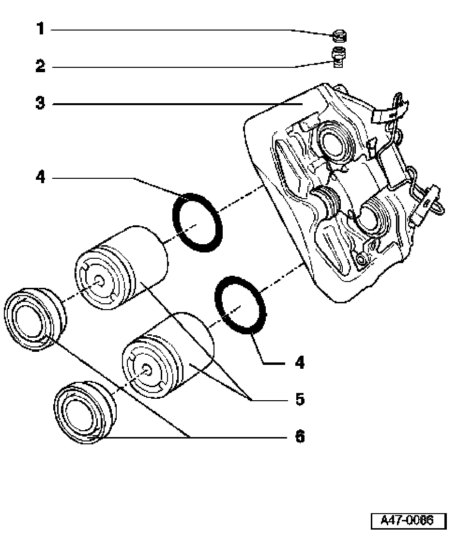 ^ Apply thin coat of installing paste G 052 150 A2 to brake cylinders, pistons and seals.