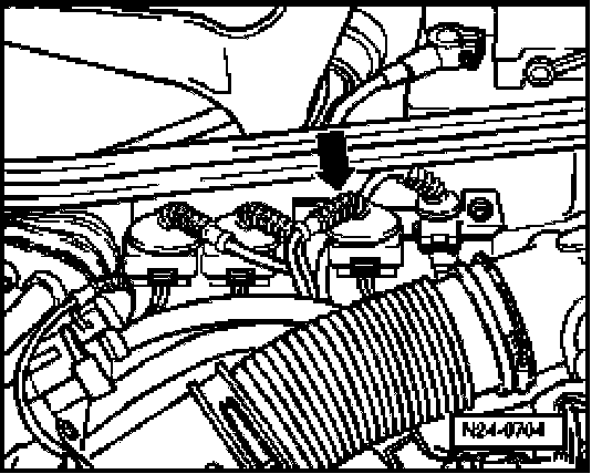 - To reach this harness connector, remove coolant reservoir attachment screws and tilt coolant reservoir to the side. The coolant hoses remain connected.