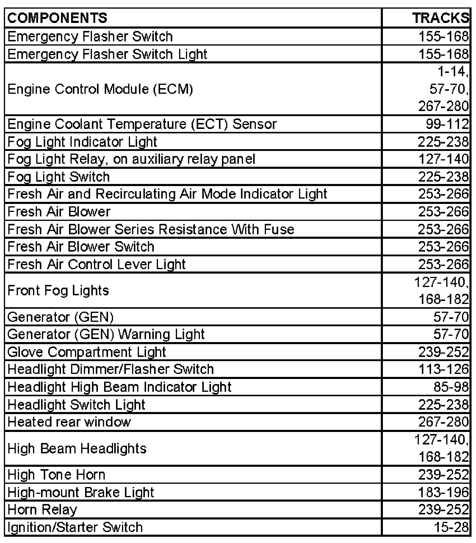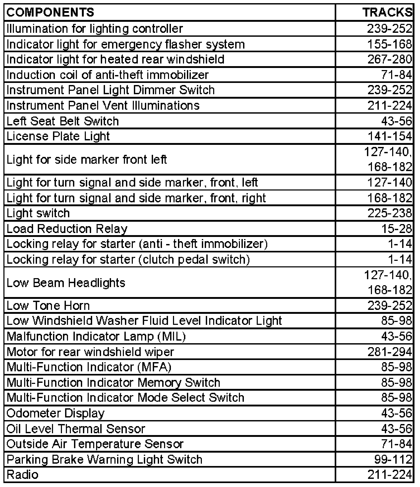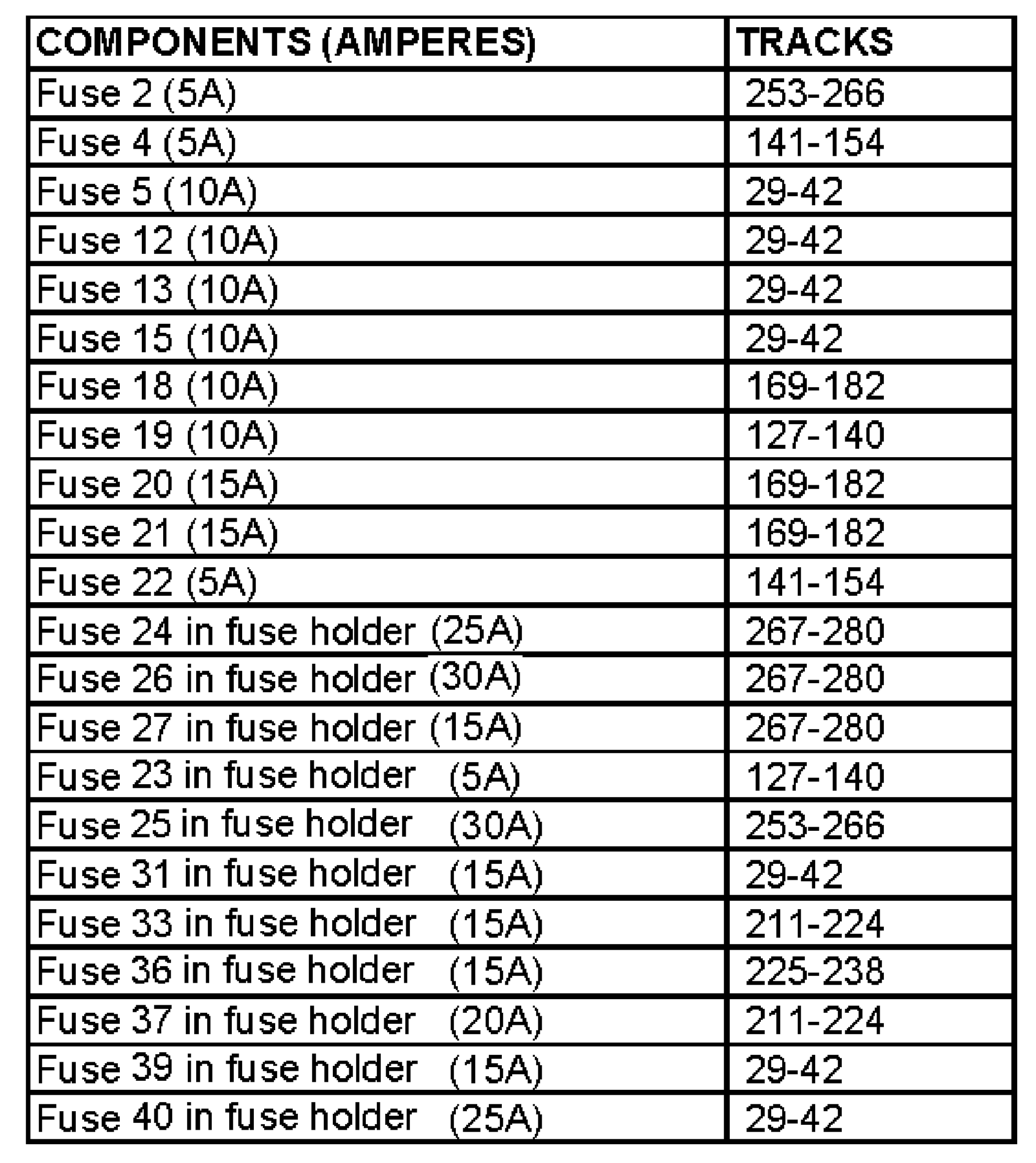 NOTE: Starting with fuse 23, fuses in the fuse holder are identified with an additional numeral 2 added to the number when shown in the wiring diagram (i.e fuse 23 in the vehicle becomes 223 in the diagrams, fuse 24 becomes 224, and so on).