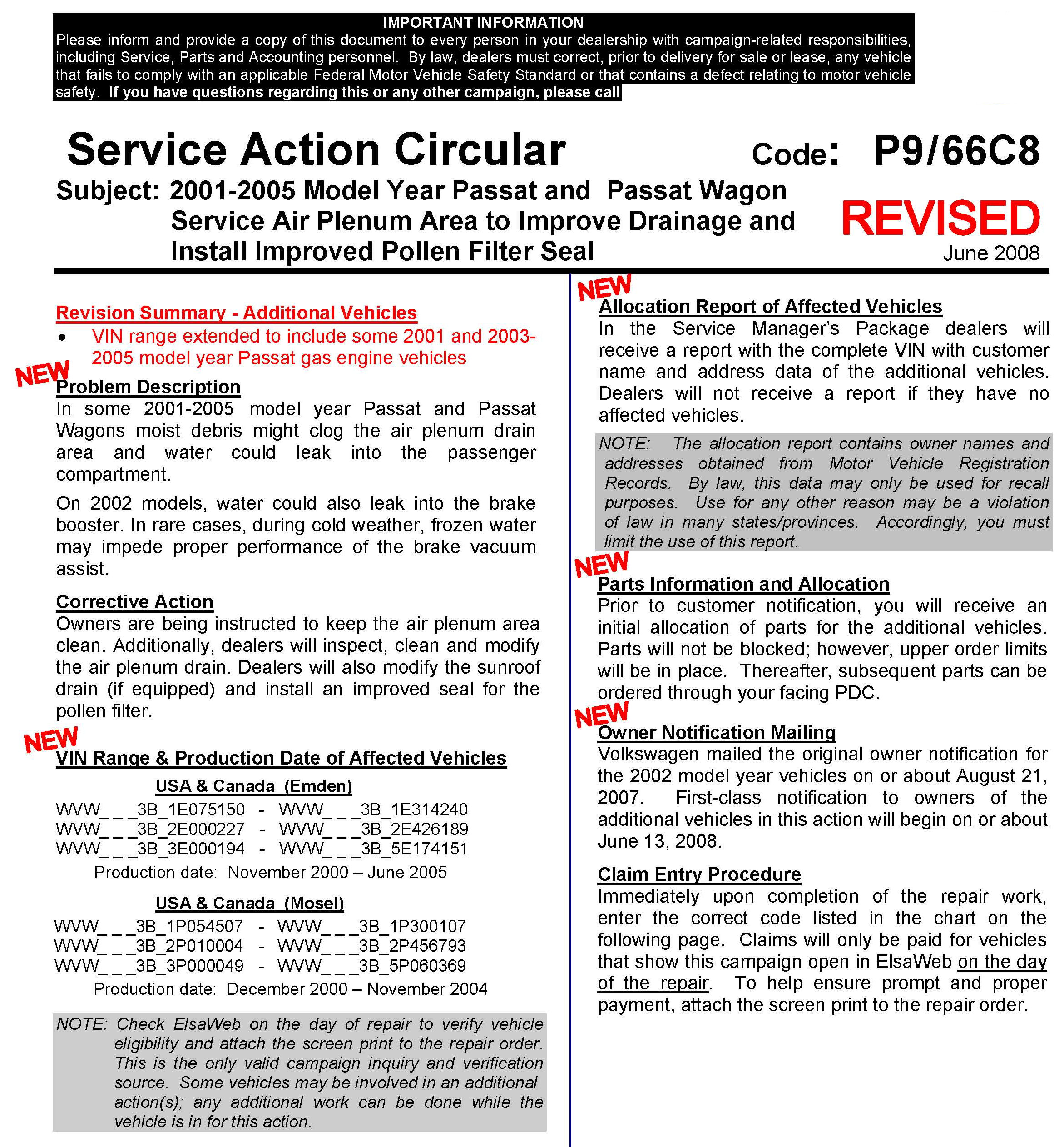 Service Action Circular