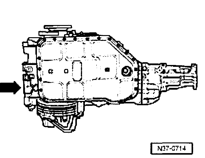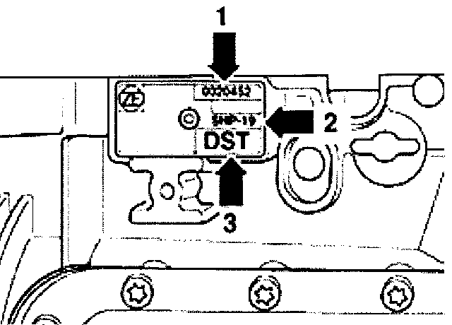 The transmission code letters are given on the type plate at the bottom of the transmission -arrow-.