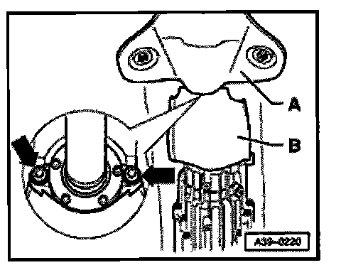 - Fit protective plates for left and right-hand drive axles -arrows-. The third bolt cannot be seen in the illustration.