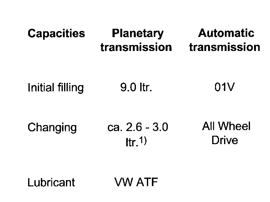 Only VW ATF available as a replacement part may be used in the planetary transmission of the automatic transmission 01V all wheel drive.