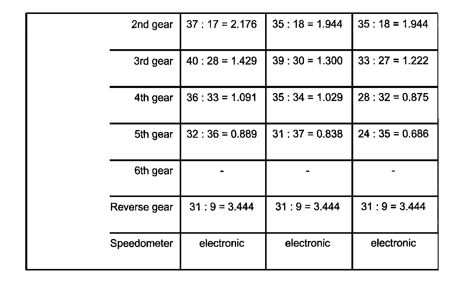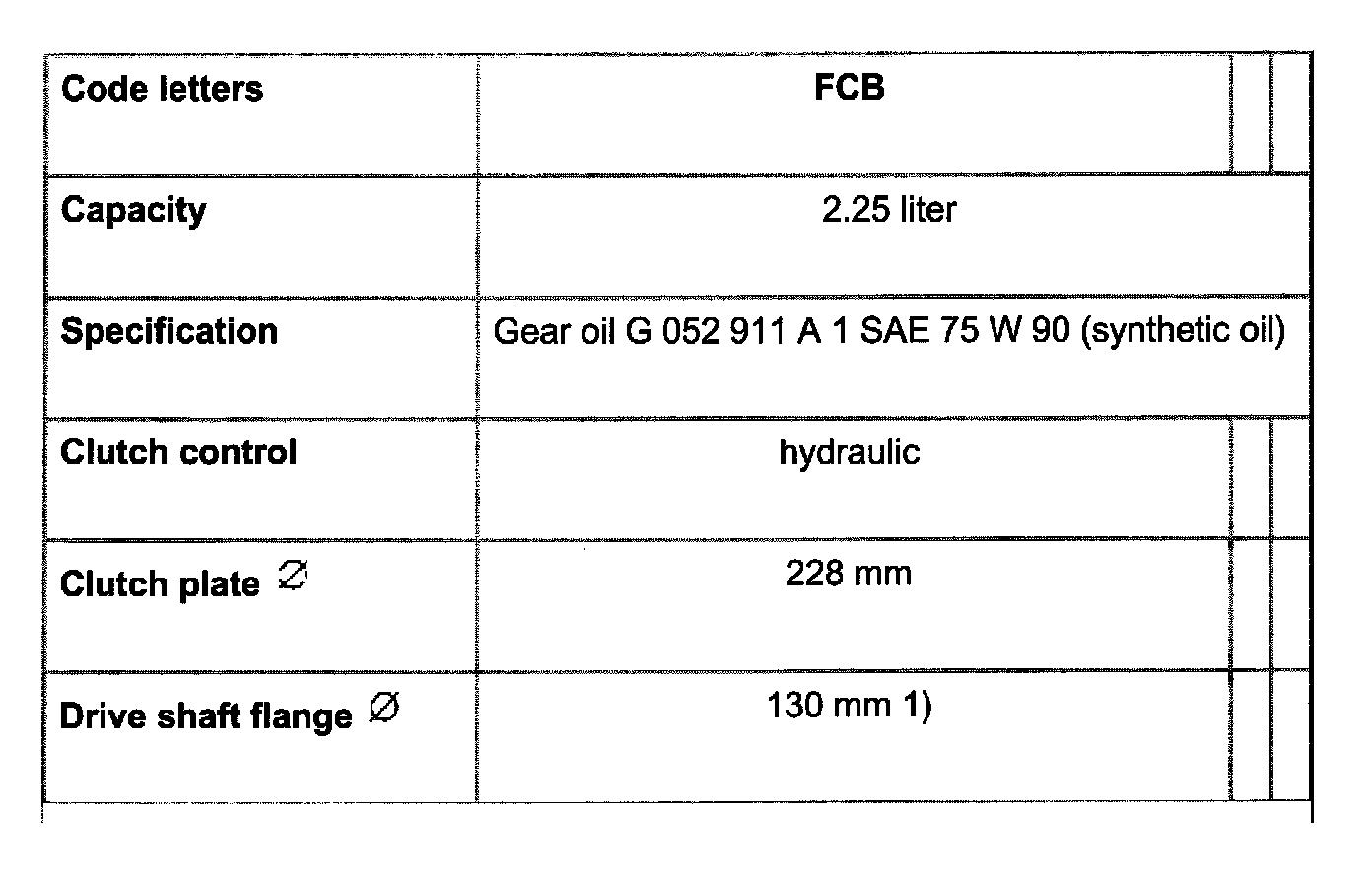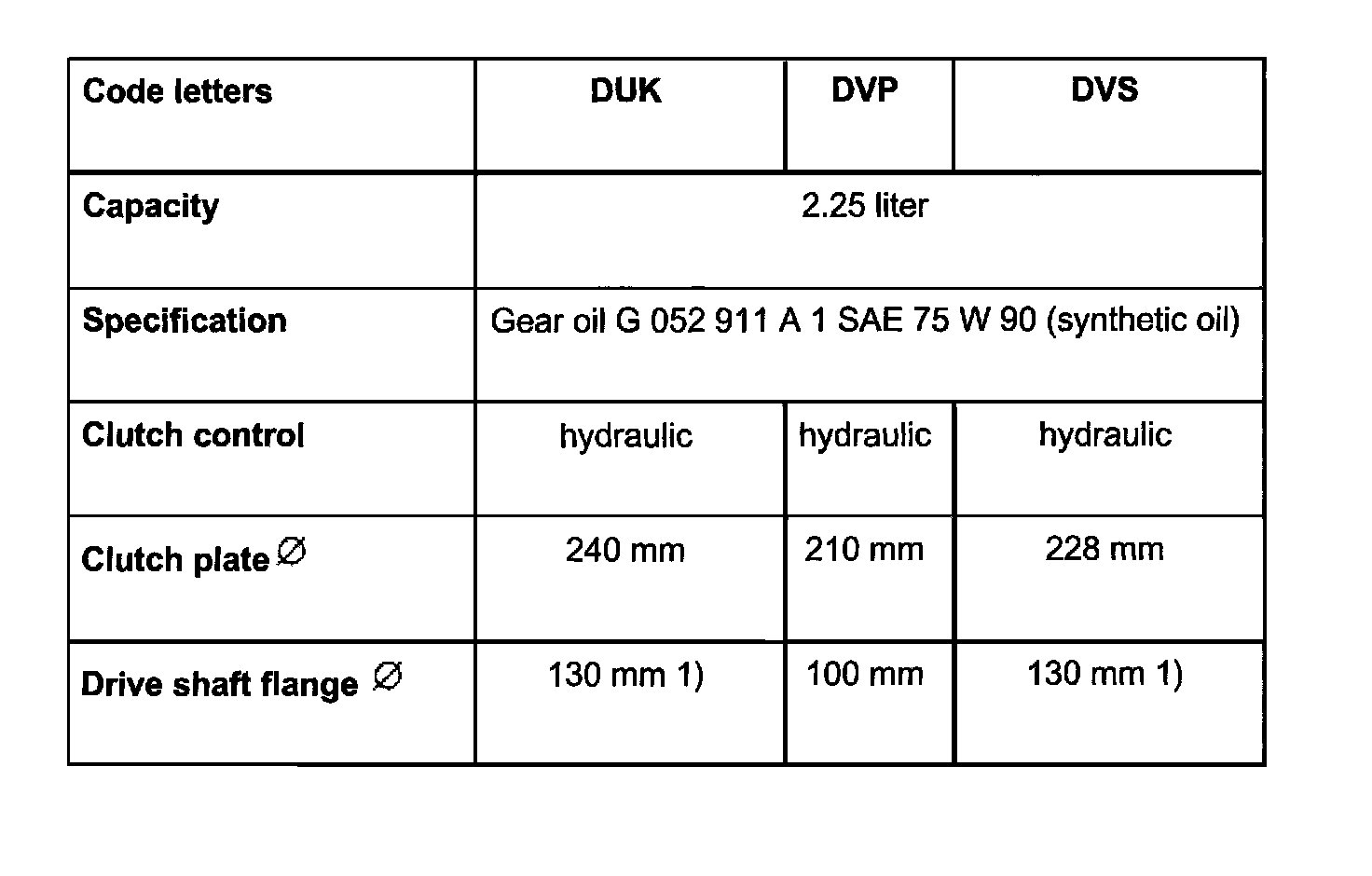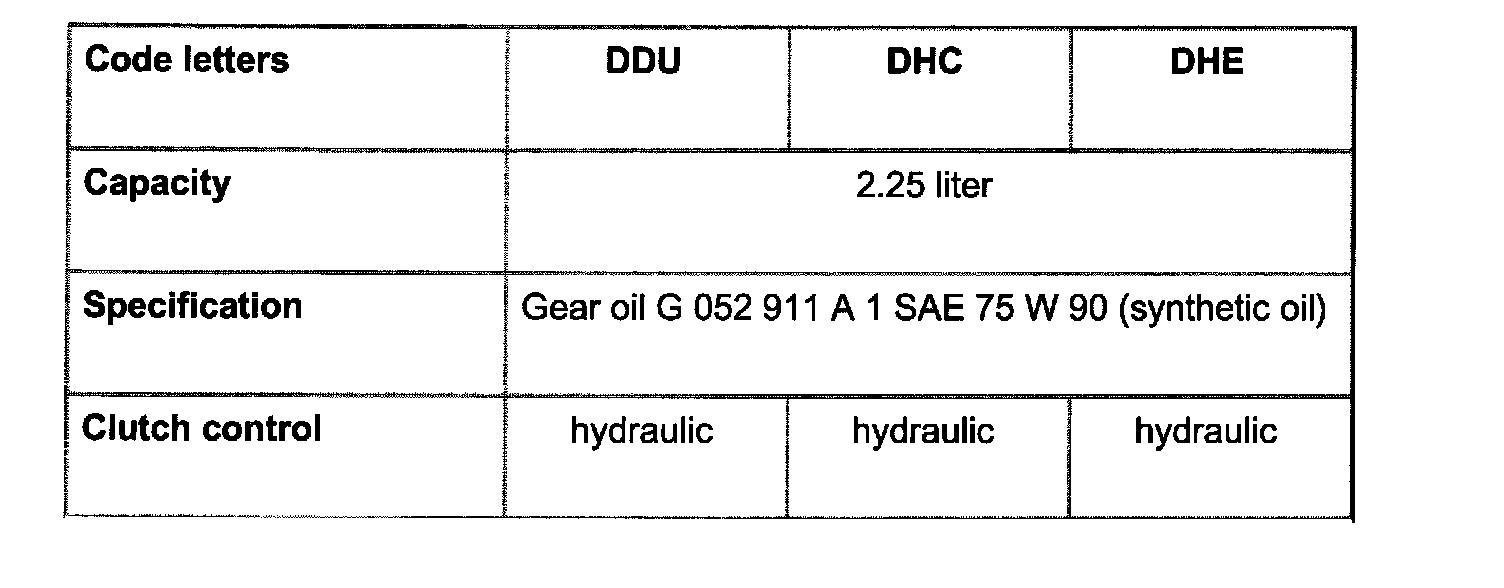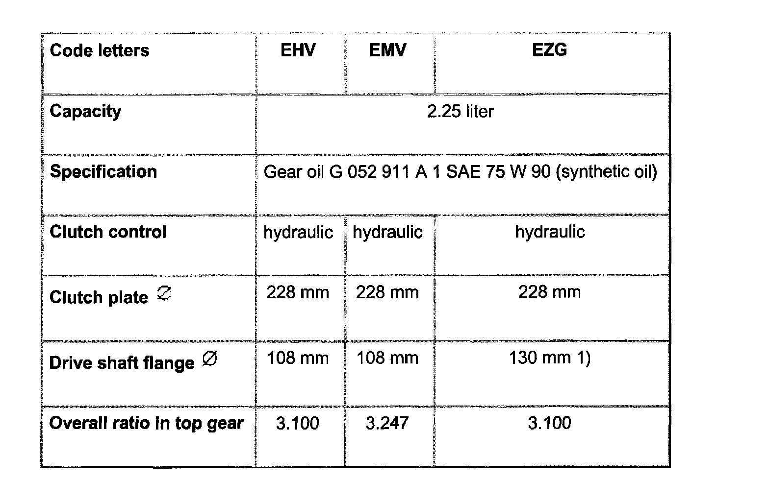 The manual transmission 012/01W is installed in the Passat 1997, as a 5 speed transmission in conjunction with the 4-Cyl. engine, 5-Cyl. injection engine and 6-Cyl. injection engine.