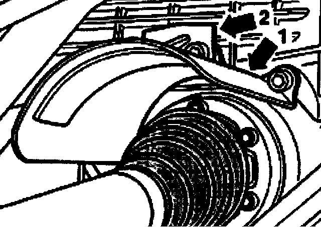- Remove cover plate over the right-hand drive shaft (arrows 1 and 2).