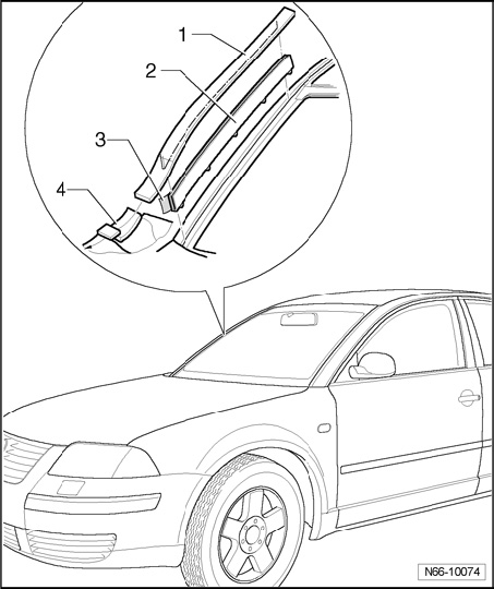 - Remove protective foil - 3 -, position retaining strip on inner roof bracing and press on forcefully.