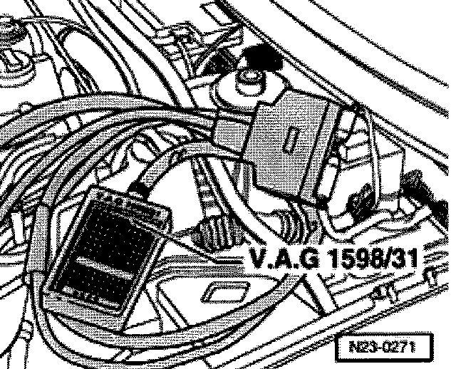 - Connect VAG1598/31 test box to control module wiring harness and to control module.