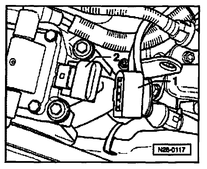 - Disconnect 5-pin connector -1- from power output stage for ignition coils -2-.