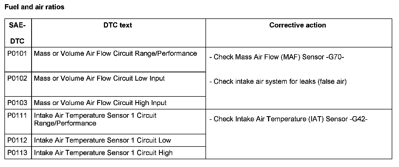 DTC P0101 - P0113: