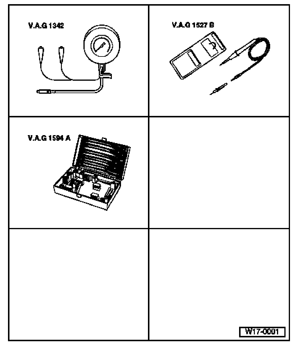 ^ Connect diode test lamp VAG 1527 B using auxiliary cables from VAG 1594 A to battery positive (+) and oil pressure switch.