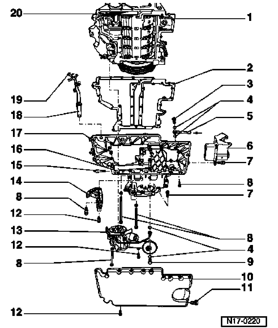 a - Area above hatched field up to max. mark: Do not replenish with engine oil!
