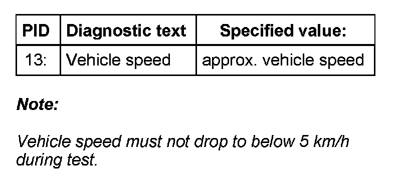 NOTE: Vehicle speed must not drop to below 5 km/h during test.