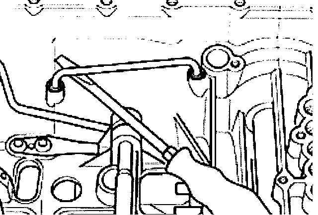 - Lever internal oil line off transmission housing using a screwdriver.