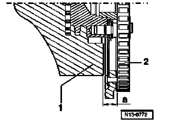 ^ Remove drive plate again and install appropriate shim -1-.