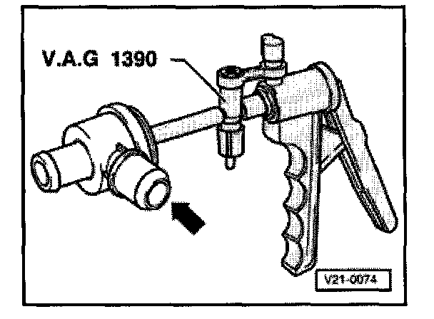 - Connect VAG 1390 hand vacuum pump to vacuum connection for deceleration shutoff valve.