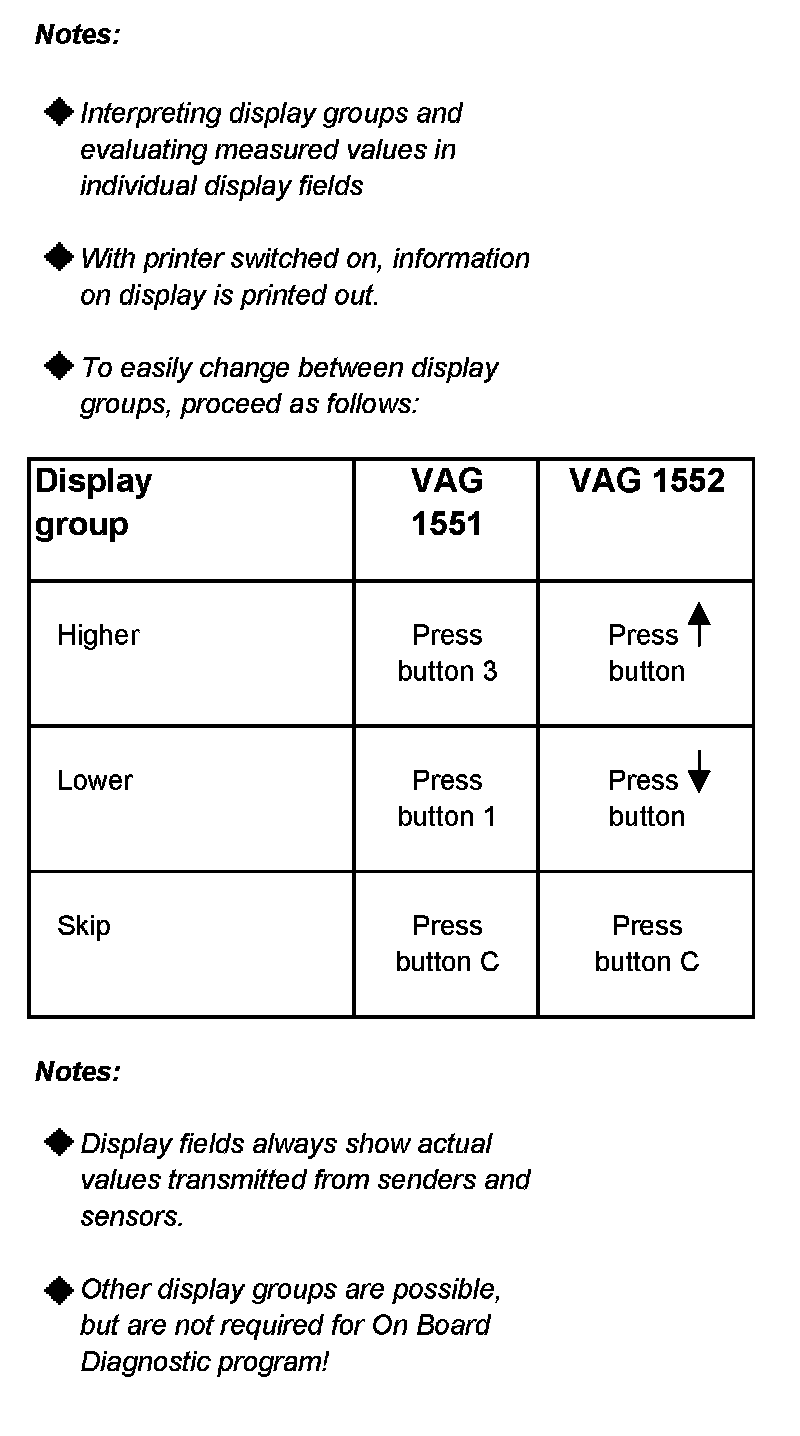 - Other display groups are possible, but are not required for On Board Diagnostic program!
