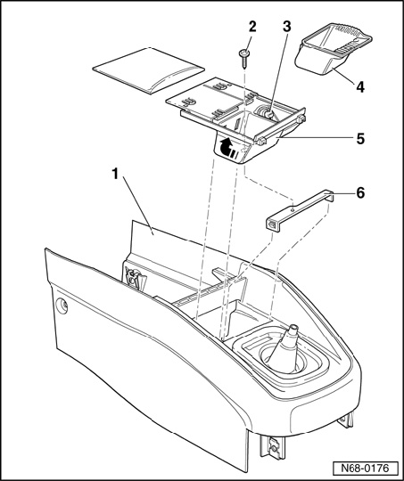 - Pull out ashtray - 5 - from center console - 1 -.