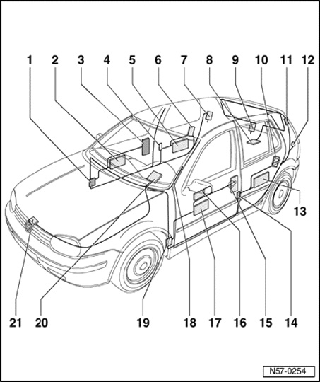 - Component location: in area of rear roof crossmember, covered by roof trim