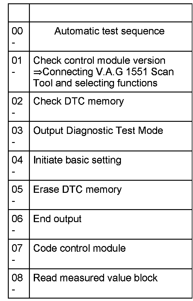 Refer to V.A.G 1551 Scan Tool operating instructions
