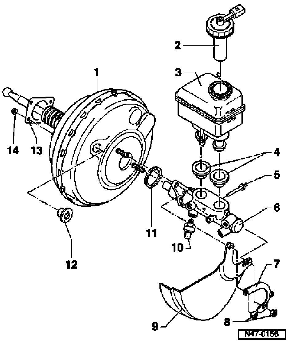 Note: Complete master cylinder and brake booster can be replaced independently of each other.